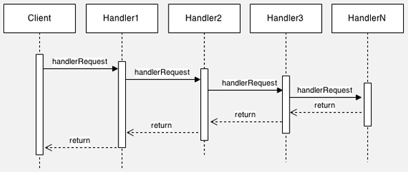 Każdy obiekt z łańcucha przechowuje referencje do kolejnego obiektu. Jeśli pierwszy element nie obsłuży żądania przekazuje je dalej.