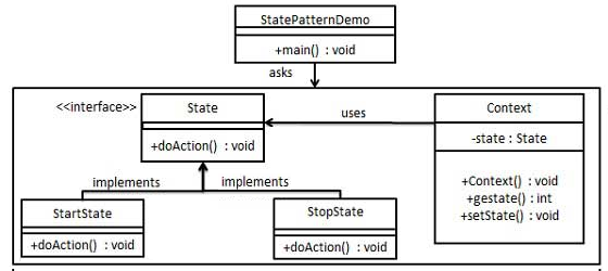 Obiekty stanu wywołując metodę (z param. np. context) zmieniają stan kontekstu. Obiekty stanu wywołują metodę (np. doAction), przyjmującą kontekst jako parametr na którym wywołują jakąś metodę (np. setState(this)).