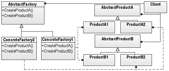 Tworzy "powiązane" ze sobą obiekty, gdzie zarówno fabryka jak i produkty posiadają klasy abstrakcyjne i konkretne.